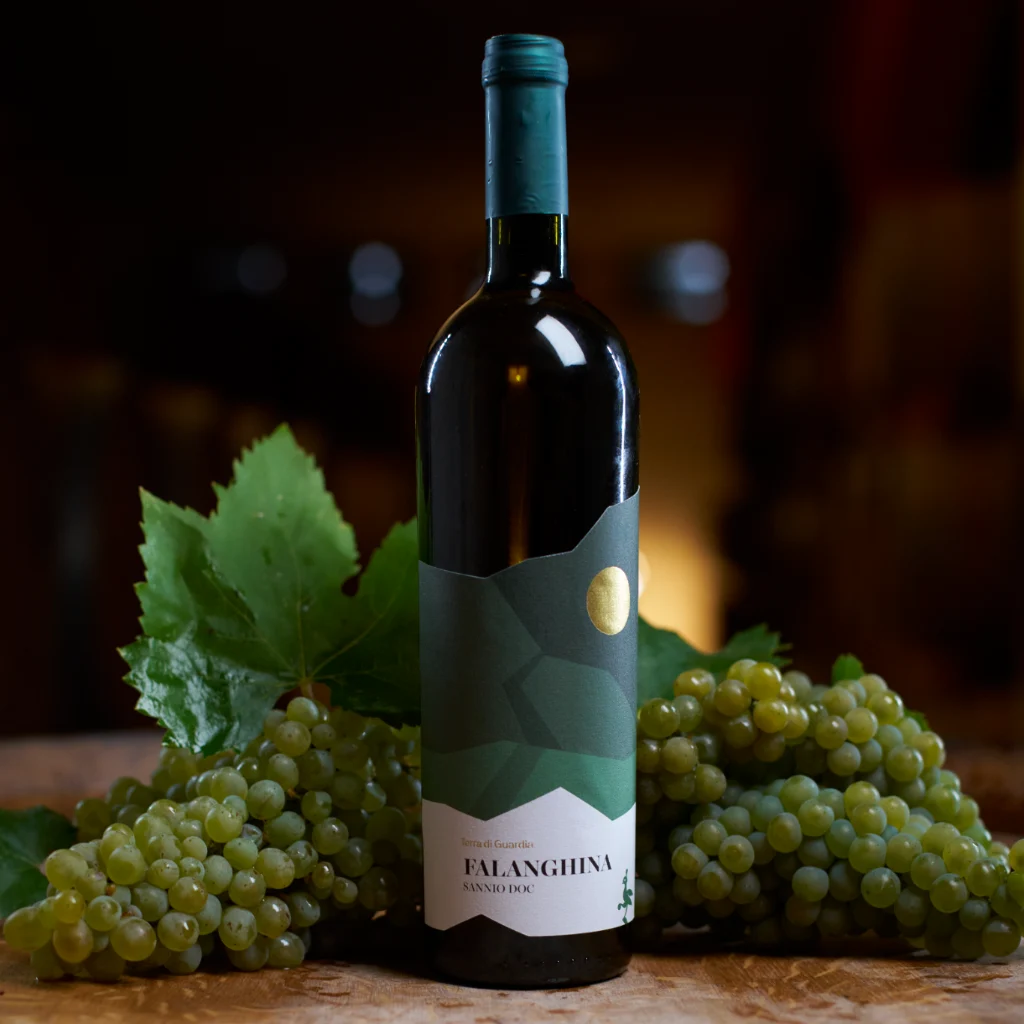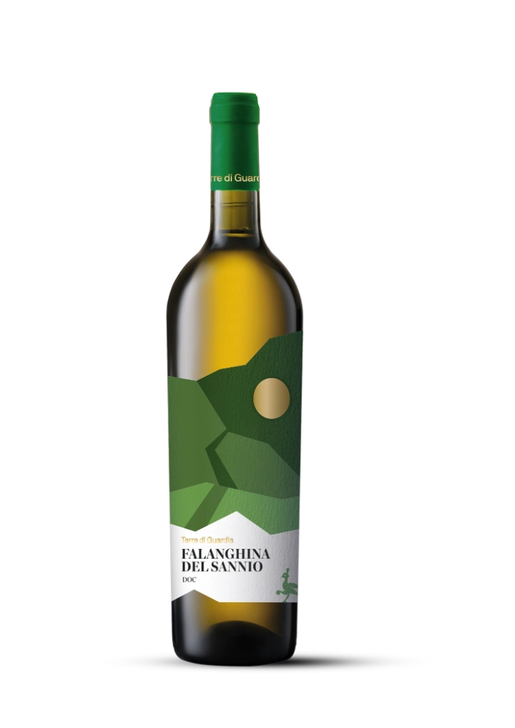 Falanghina DOC Sannio della linea Terre di Guardia, espressione tipica del territorio sannita. Si presenta con profumi di agrumi, fiori bianchi e mela verde accompagnati da leggere sfumature minerali. In bocca è scorrevole e vivace, sostenuto da una freschezza marcata e da una piacevole sapidità che ne rende la beva equilibrata e immediata, con finale pulito e armonico.