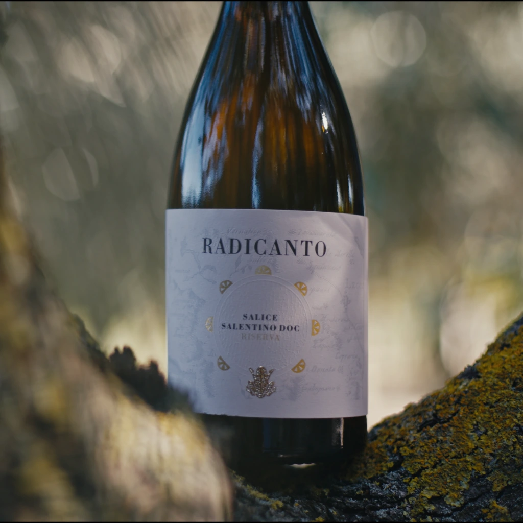 Radicanto nasce dall’incontro tra radici e canto: le radici richiamano il legame profondo con i vitigni autoctoni e la storia del territorio pugliese, mentre il canto rappresenta la dimensione conviviale e culturale della tradizione locale.