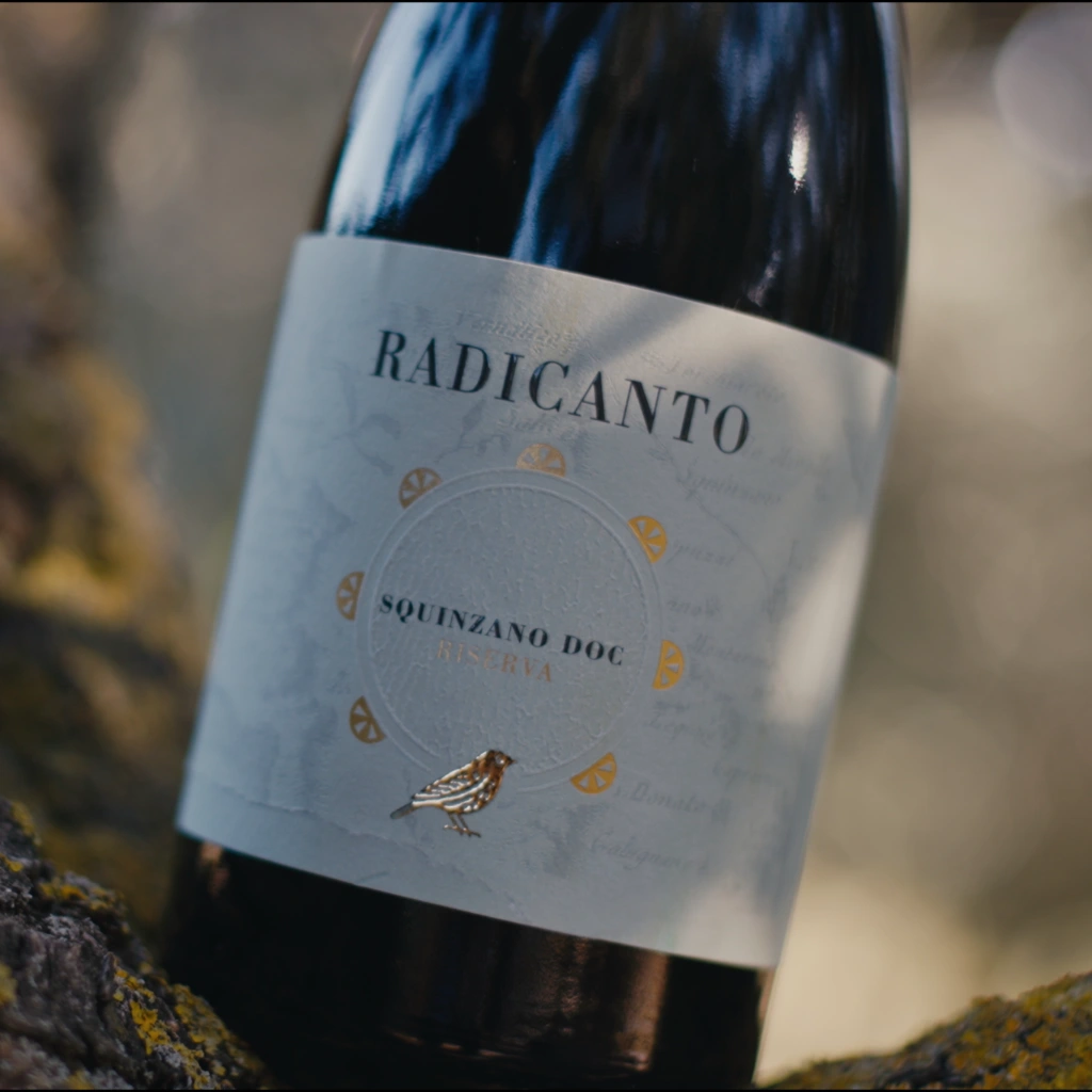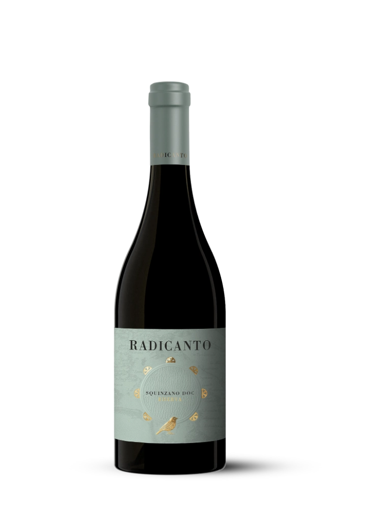 Squinzano DOC Riserva della linea Radicanto, rosso ottenuto da Negroamaro in purezza, espressione tipica del Salento. Al naso emergono profumi di ciliegia sotto spirito, erbe aromatiche e rabarbaro con leggere sfumature balsamiche. Al palato è caldo e materico, sostenuto da tannini ben integrati e da una struttura avvolgente che accompagna verso un finale lungo e persistente, in cui ritornano le sensazioni mediterranee.