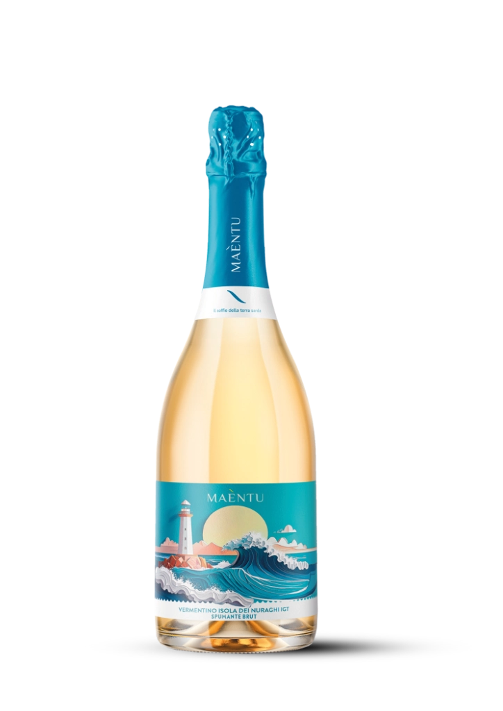 Vermentino Isola dei Nuraghi IGT Spumante della linea Maèntu, ottenuto da uve Vermentino coltivate in Sardegna. Al naso esprime profumi di agrumi, mela verde e fiori bianchi, accompagnati da leggere note saline. Al palato è fresco e teso, con bollicina cremosa e fine perlage che valorizzano la mineralità e accompagnano verso un finale pulito e profondamente mediterraneo.